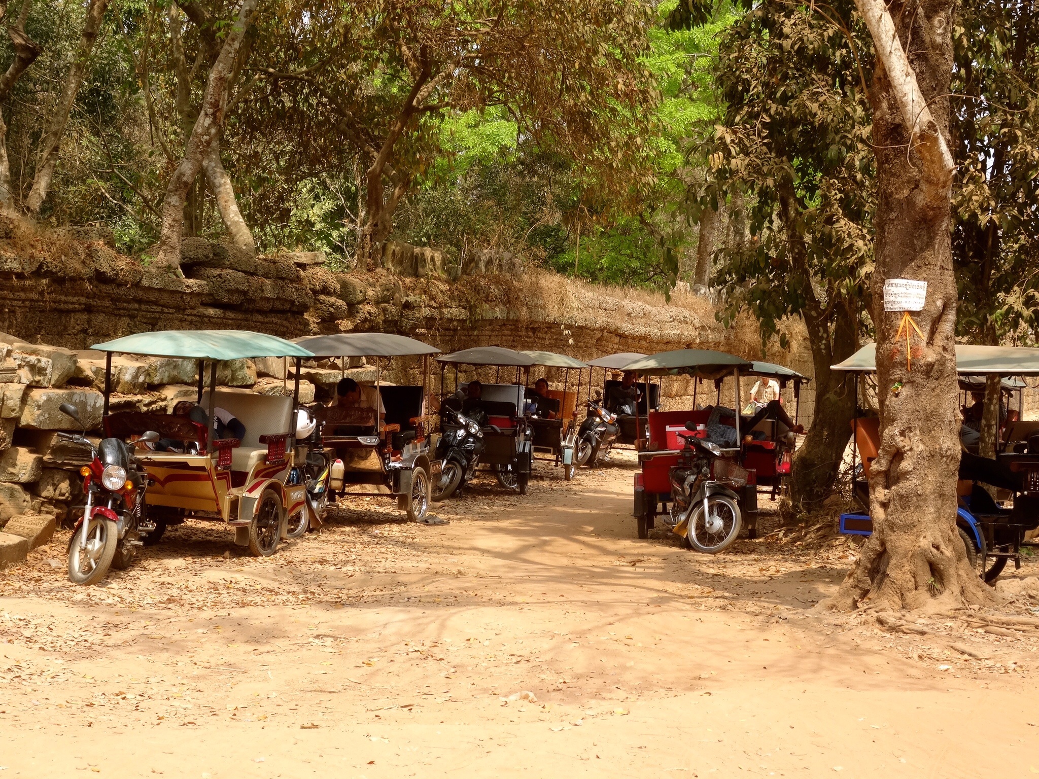 Pour faire le tour du park archéologique d'Angkor Wat , vous avez le choix entre le tuk tuk , le vélo ( à déconseiller en période de forte chaleur) et le taxi ( mon choix en période de forte chaleur )