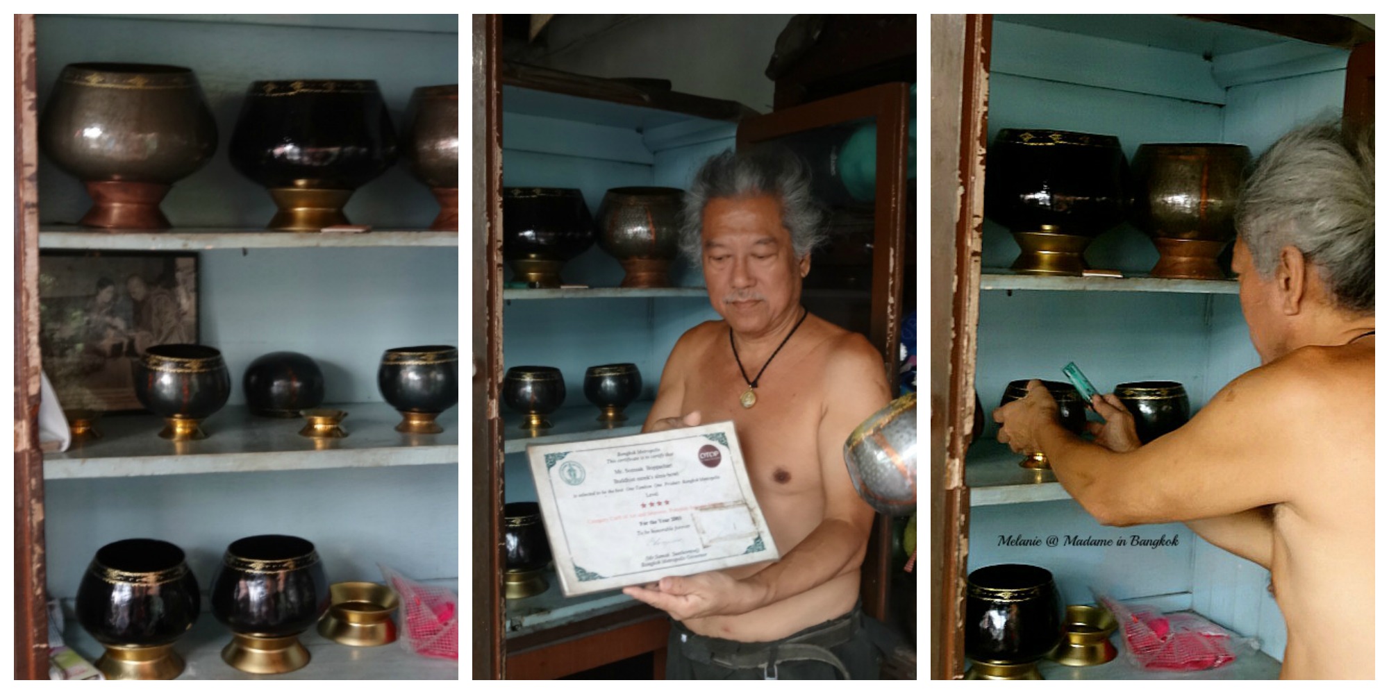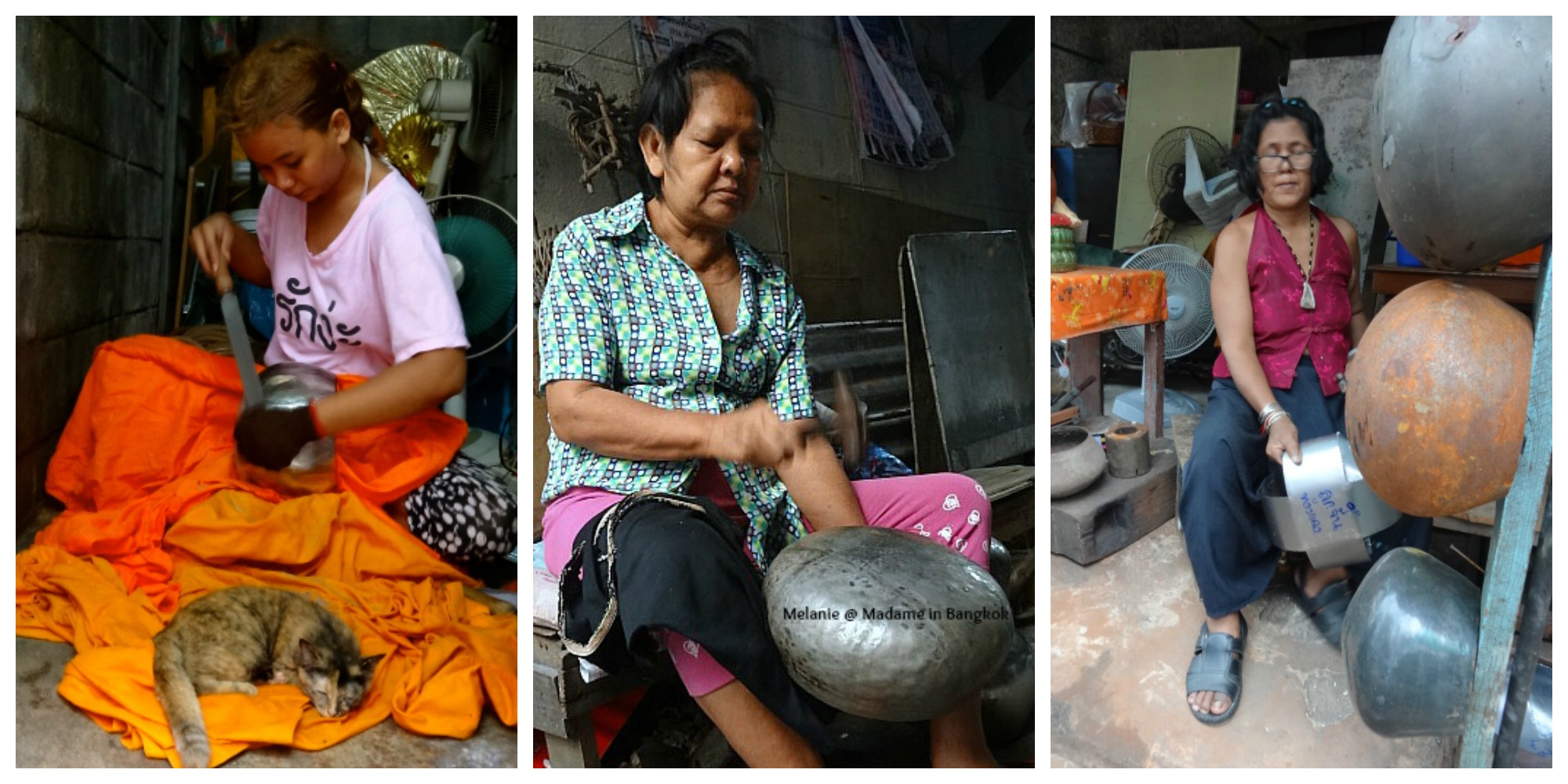 Il existe un quartier de Bangkok charmant , où vous pouvez encore voir le travail des artisans qui martèlent les bols que les moines portent le matin , afin que chacun les remplisse d'offrandes