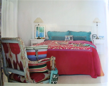 Love the colorful bedroom and the ethnic fabrics. The embroidered cushion : CAPRI is divine